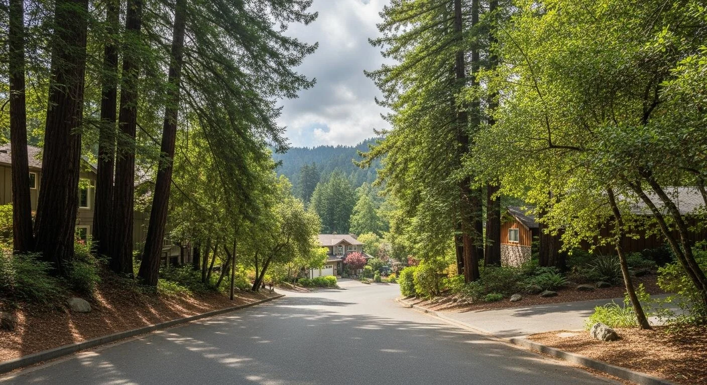 Towering redwoods, old oaks, and dense forest can completely change how a neighborhood feels. They soften the roads, quiet the air, and make even an ordinary walk feel like stepping into nature.